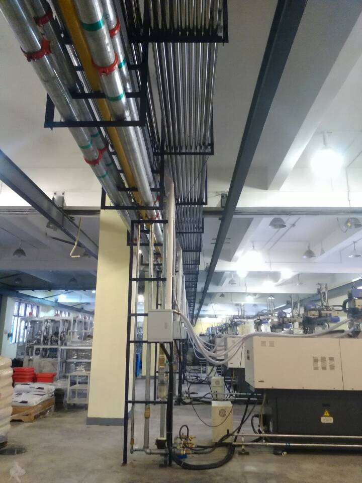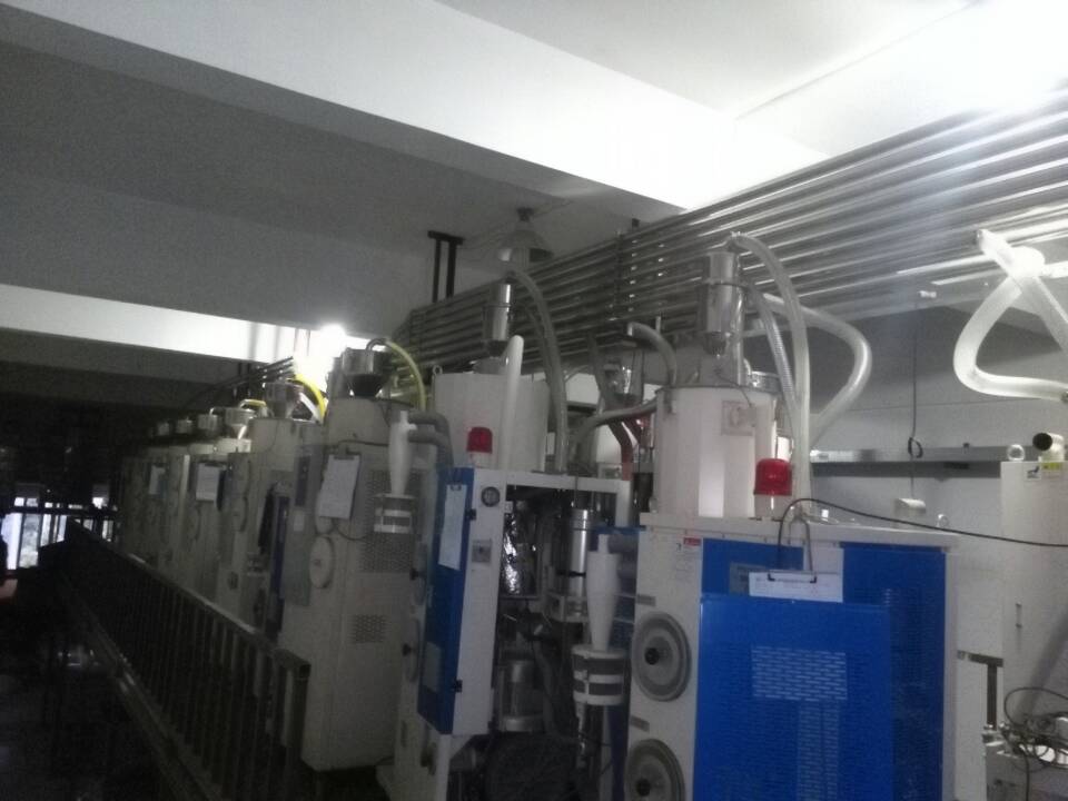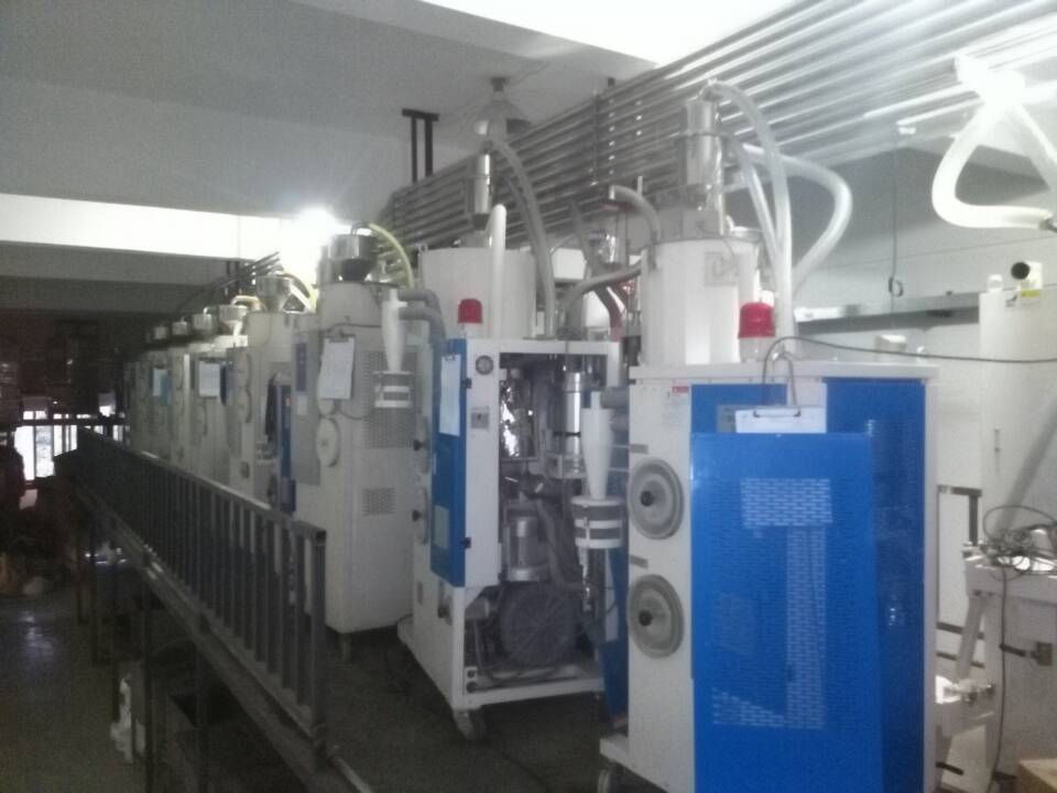 塑料中央供料系統(tǒng)采用真空傳送方式,通過集中的管路系統(tǒng)將塑料原料從儲料罐輸送到中央除濕干燥系統(tǒng),然后將干燥后的原料輸送到每臺注塑機(jī)中。烘干上料輸送系統(tǒng)采用“一臺機(jī)器一根管”的設(shè)計(jì)方式,烘干上料系統(tǒng)保證整個(gè)系統(tǒng)的空氣對原料進(jìn)行輸送,防止除濕干燥后的原料回潮。同時(shí)在每個(gè)輸運(yùn)行穩(wěn)定,絕無堵料的現(xiàn)象發(fā)生。